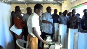 Students at Ngomeni Secondary School in Kilifi County have their biometric details taken during the national launch of the mass registration for maisha card at the school. (Photo: Emmanuel Masha)